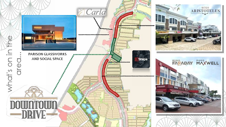 • Berada di lingkungan komersil ruko-ruko yang sudah ramai sehingga sudah menjadi destinasi (Ruko Aristoteles, Ruko Faraday, Ruko Maxwell, Ruko Melody, dll)