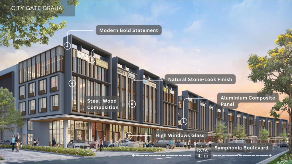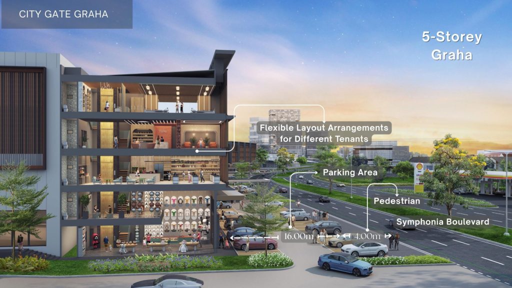 Mengusung konsep Seamlessly Connected to The Future, Kawasan City Gate ini terhubung oleh 3 Jalan Boulevard dari Gading Serpong – BSD City, Setiap unit dirancang dengan double facade premium, bukaan kaca lebar, double volume ceiling, mezzanine balcony, opsi private lift, serta tata ruang fleksibel yang ideal untuk kantor, showroom, klinik, F&B, maupun berbagai bisnis profesional lainnya. Didukung sistem five layer parking untuk kenyamanan dan kemudahan akses, City Gate menawarkan beragam pilihan tipe mulai dari Business Loft Office Suite harga 19 Milyar, Studio Loft Graha harga 8,2 Milyar hingga Commercial Lot mulai 8 Milyaran.